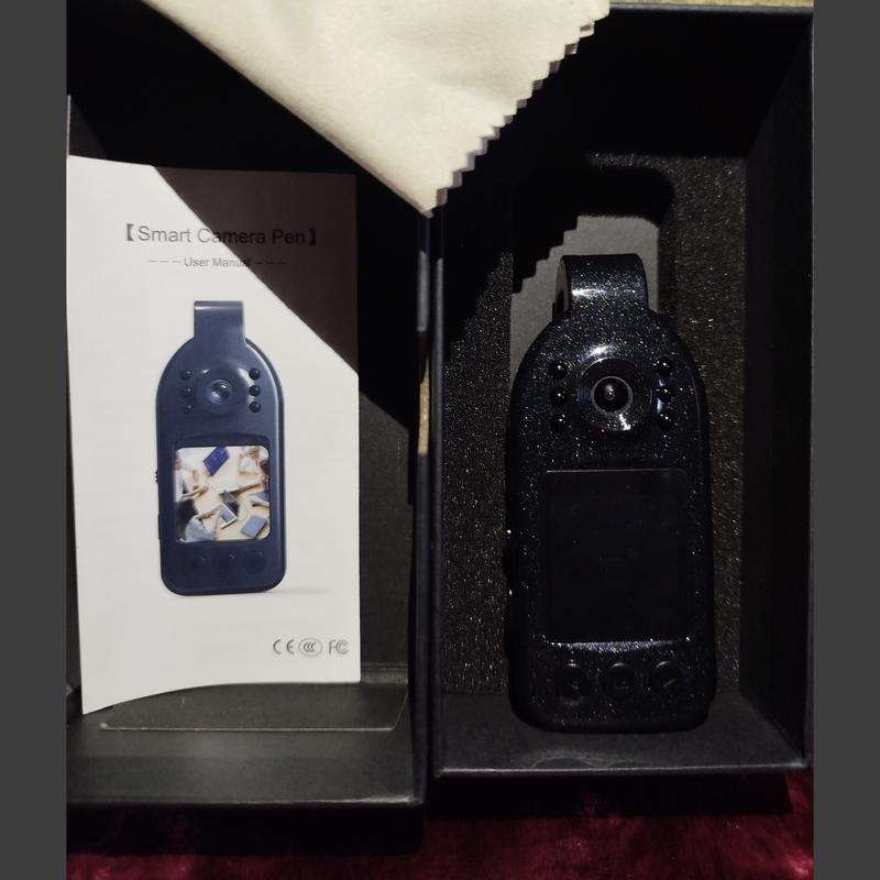 2К видео(2560*1440Р) высокой четкости,оснащена широкоугольным объективом на 120 градусов. Экран 1,3 дюйма, для просмотра видео, также возможно использовать как автономное устройство записи звука. 6 инфракрасных ламп для ночного видения и обнаружения движения. Аккумулятор емкостью 1100мАч, быстрая зарядка Тype-C. Задний зажим,ОТG-подключение и циклическая запись. _Характеристики_ Досвиле ве******Р) Формат видео: MOV Видео код: Н.264 Интерфейс: Type-C Угол объектива: 120 градусов Место хранения: Карта ТF 8ГБ-256ГБ(не включено) Входное напряжение: DC 5V _ Комплектование _ 1*камера 1*чёрная подарочная коробка, с мягким ложиментом 1*зарядний шнур 1*тканина для чистки 1*pin 1*сообщитель пользователя
