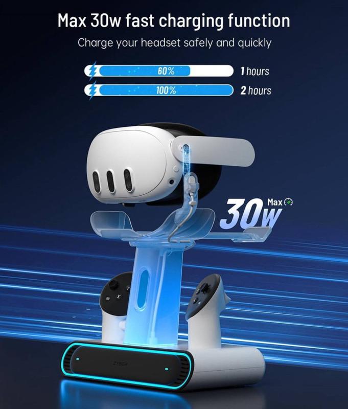 Зарядная док-станция zyber 30w для meta quest 3 / quest 3s с быстрой зарядкой и led подсве...
