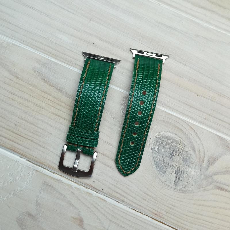 Ремешок для Apple watch. Ремешок изготовлен вручную, с ручной прошивкой. Использована кожа козы зеленого цвета. Прошитий рудими нитками. Ширина ремешка 20-22 мм. Фурнитура на выбор цвета никель или золото. Размер S-M – 16-19 см или L-XL – 19-22 см Для Apple watch 38,40,41, 42, 44,45 мм або 49 мм. Также изготавливают ремешки для часов по Вашим размерам. Для расчета стоимости пишите уведомления. Товар под заказ