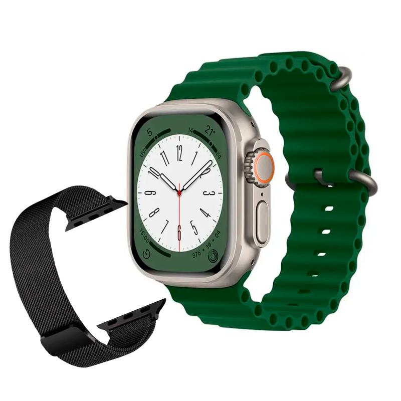 Смарт часы smart watch ultra 2 amoled 49 мм зеленый + металлический ремешок