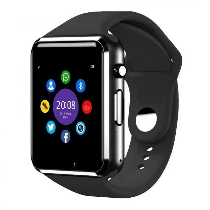 Смарт-часы Smart Watch A1 Новая модель часов в стиле apple watch - Smart Watch A1 Стильные Bluetooth-часы Smart Watch A1, имеющие довольно впечатляющий функционал, способные служить как в качестве гарнитуры, так и в качестве альтернативы телефону. И ко всему, еще и оборудованы камерой на 2 Мп. Smart A1 Часы Smart A1 - это новая разработка из серии Smart GT. По сравнению с предыдущей моделью GT08, эти часы стали существенно тоньше и элегантнее. Smart A1 комплектуются новым процессором и сенсорным экраном, имеют камеру 2 МП и увеличенную емкость аккумулятора. Помимо этого в данной модели есть множество функций для занятий спортом, отслеживания сна, питания и калорий. Процессор: Мощный процессор MTK6260 NEW, который совместим с Android и iOS. Поддерживают сим-карту и позволяют использовать их независимо от смартфона. Есть дополнительный слот для карты памяти. Работают на русском и английском языках. Корпус и ремешок: Металлический корпус прямоугольной формы. Браслет черного цвета. Функции: Камера 2 МП, аудиоплеер, календарь, диктофон, Antilost, мировое время, функция "Умный сон", Fiteness - tracker (шагомер, измерение калорий), новый мощный процессор, сенсор 4 - го поколения, отображение разных видов часов, синхронизация с мобильным устройством на системе Android или iOS посредством Bluetooth соединения, открывающее доступ к большинству функций часов, возможность совершать звонки и приниматьотправлять смс, отдельная Sim - карта и карта памяти, смена тем оформления, профилей звука, файловый менеджер, просмотр изображений. Аккумулятор: Встроенный аккумулятор на 400 мАч, время в режиме ожидание составляет 7 дней, в обычном режиме работы - 2 - 4 дня. Не рекомендуем покупать часы ребенку до 5 лет, так как часы могут быть больше на маленькую руку. Богатый ассортимент функций, представленных в смарт-часах A1, приятно удивляет. Установка Sim-карты позволяет функционировать гаджету в автономном режиме, без взаимодействия со смартфонами. Стоит отметить, что часы способны взаимодействовать с устройствами, работающими на платформах iOS и Android. Аудиоплеер наделенный мощными динамиками, позволят владельцам насладиться любимыми треками и фильмами. Внешняя память при желании может быть увеличена до 16 гигабайт. Для удобства использования кнопка управления размещена в нижней части часов, а наверху установлена камера. Яркий сенсорный экран с высокой контрастностью имеет диагональ в 1,54 дюймов. Для использования всего функционала придется установить дополнительное программное обеспечение. Процессор MediaTek обеспечивает часы особой мощностью. Технические характеристики Производитель UWatch Модель из линейки Smart Q8 A1 Тип Умные часы Интерфейс соединения со смартфоном Bluetooth 3.0 Диагональ экрана, дюймов 1,54 Тип дисплея TFT Разрешение экрана 240х240 Сенсорный есть Вибрация есть Звуковой сигнал есть Вызовы есть SMS есть Электронная почта нет События календаря есть Емкость, мАч 380 Время работы до 7 дней Размеры, мм 48x40x9 Вес, г 62 Цвет корпуса/ремешка черный/черный Съемный ремешок нет Материал ремешка каучук Управление музыкальным плеером есть Управление камерой есть GPS нет NFC есть Камера есть