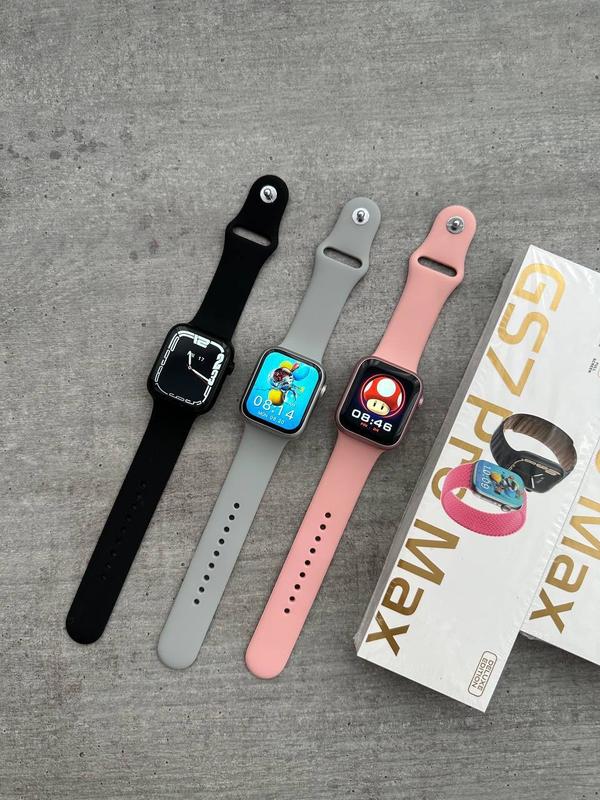 GS7 Pro Max - з безрамковим екраном 🔥 Кольори: чорний, срібло, рожевий Що крутого: - Дуже яскравий дисплей - Безрамковий екран Характеристики / Функціонал: Показує ім’я контакту при дзвінку🔥 ⁃ телефона книга, панель набору номера повідомлення з усіх соц. мереж слідкує за станом здоров‘я, спортивні функції, будильник, секундомір, таймер, калькулятор, пошук телефону та навпаки можна керувати музикою та Тік Током на телефоні функція “Always On”, постійно ввімкнений екран Енергозберігаючий режим При підняті руки вмикається дисплей, можна вимкнути