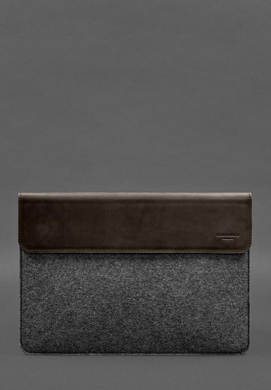 Чохол-конверт із клапаном шкіра+фетр для macbook 13" темно-коричневий crazy horse