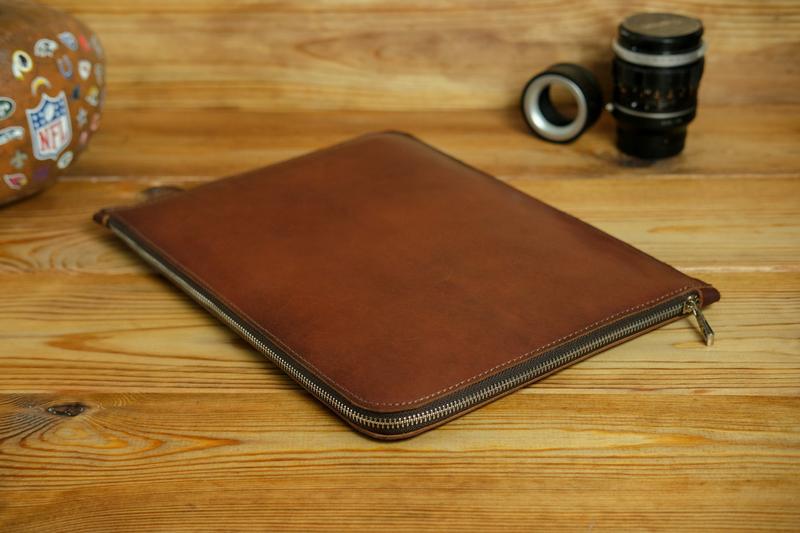 Кожаный чехол на Macbook - Толщина кожи 1,6 мм - Внутри мягкая подкладка из войлока - Изготавливается индивидуально для вашей модели макбука в течение 1-2 рабочих дней - Закрывается на молнию Чехол изготовлен из натуральной кожи "Итальянский Краст". Данная кожа имеет полу-матовую поверхность. Высокое качество изделия обеспечит надежную защиту вашего компьютера от царапин и потертостей, а также смягчит силу удара при падении. Чехол удобный в использовании, компьютер в него вставляется и застегивается на молнию. Все швы ровно прошиты коричневыми нитками (под цвет чехла), используется турецкая фурнитура. Хорошее вложение в защиту внешнего вида вашего макбука на многие годы. Срок изготовления 1-5 рабочих дней. Изготовлена из натуральной (бычьей) кожи высокого качества, что обеспечивает службу годами. В нашей мастерской работают профессионалы своего дела, которые любят свою работу и вкладывают душу в изготовление каждого изделия, благодаря чему готовый аксессуар выглядит аккуратно и заставляет влюбиться с первого взгляда. Дополнительно вы можете заказать услугу гравировки (70 грн) или оттиска/вдавливания (80 грн) надписи либо изображения. Упаковка выполнена в современном крафтовом стиле. Пример: Также есть возможность выбрать данный аксессуар в другом цветовом варианте: