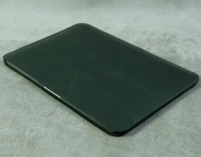 Чехол -карман - Толщина кожи 1,6 мм - Изготавливается индивидуально для вашей модели макбука в течение 1-2 рабочих дней Чехол изготовлен из натуральной кожи "Crazy Horse" в форм-факторе - карман. Данная кожа характеризуется тем, что со временем приобретает свой уникальный внешний вид за счет естественных царапин и потертостей. Высокое качество изделия обеспечит надежную защиту вашего компьютера от царапин и потертостей, а также смягчит силу удара при падении. Чехол максимально удобный в использовании, компьютер просто в него вставляется без лишних застежек. Все швы ровно прошиты зелеными нитками (под цвет чехла). Хорошее вложение в защиту внешнего вида вашего макбука на многие годы. Срок изготовления 1-5 рабочих дней. Изготовлена из натуральной (бычьей) кожи высокого качества, что обеспечивает службу годами. В нашей мастерской работают профессионалы своего дела, которые любят свою работу и вкладывают душу в изготовление каждого изделия, благодаря чему готовый аксессуар выглядит аккуратно и заставляет влюбиться с первого взгляда. Дополнительно вы можете заказать услугу гравировки (70 грн) или оттиска/вдавливания (80 грн) надписи либо изображения. Упаковка выполнена в современном крафтовом стиле. Пример: Также есть возможность выбрать данный аксессуар в другом цветовом варианте: