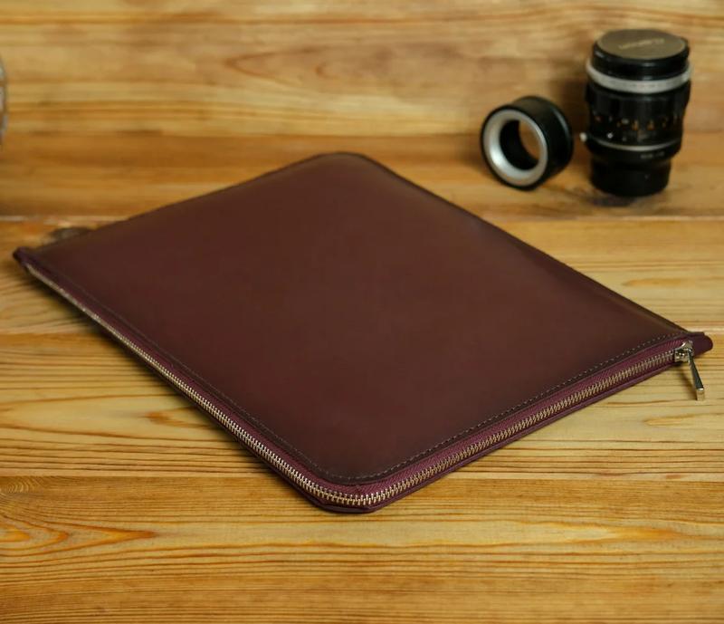Кожаный чехол на Macbook - Толщина кожи 1,6 мм - Внутри мягкая подкладка из войлока - Изготавливается индивидуально для вашей модели макбука в течение 1-2 рабочих дней - Закрывается на молнию Чехол изготовлен из натуральной кожи "Итальянский Краст". Данная кожа имеет полу-матовую поверхность. Высокое качество изделия обеспечит надежную защиту вашего компьютера от царапин и потертостей, а также смягчит силу удара при падении. Чехол удобный в использовании, компьютер в него вставляется и застегивается на молнию. Все швы ровно прошиты бордовыми нитками (под цвет чехла), используется турецкая фурнитура. Хорошее вложение в защиту внешнего вида вашего макбука на многие годы. Срок изготовления 1-5 рабочих дней. Изготовлена из натуральной (бычьей) кожи высокого качества, что обеспечивает службу годами. В нашей мастерской работают профессионалы своего дела, которые любят свою работу и вкладывают душу в изготовление каждого изделия, благодаря чему готовый аксессуар выглядит аккуратно и заставляет влюбиться с первого взгляда. Дополнительно вы можете заказать услугу гравировки (70 грн) или оттиска/вдавливания (80 грн) надписи либо изображения. Упаковка выполнена в современном крафтовом стиле. Пример: Также есть возможность выбрать данный аксессуар в другом цветовом варианте: