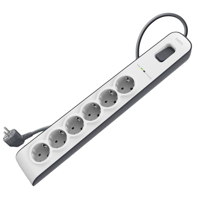Сетевой фильтр с защитой от перепадов напряжения 2м, 6 розеток belkin - удлинитель с защит...