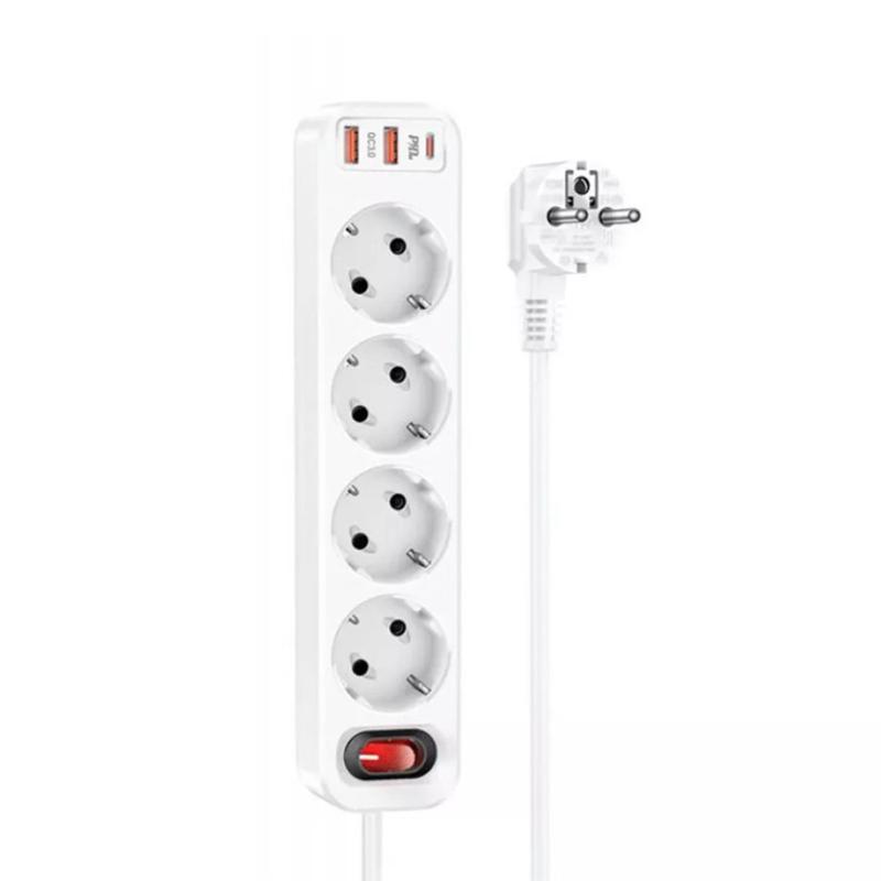 Hoco NS1 Aura - это мощный сетевой фильтр с 4 розетками, 2 разъемами USB и портом Type-C. Основные характеристики: - тип вилки: EU; - подключение: 4 розетки + 2*USB + Type-C; - общая мощность розеток: 4000 Вт; - мощность разъема USB: до 18 Вт; - мощность разъема Type-C: до 20 Вт; - общий выход: 5В/3А; - поддерживает быструю зарядку; - кабель питания: ПВХ, длина 1,8м; - материал: огнестойкий поликарбонат; - встроенная защита. Удобный дизайн Hoco NS1 Aura позволит вам создать точку питания в любом удобном месте благодаря кабелю длиной 1,8м. Розетки на нем расположены под углом 45°, поэтому подключенные зарядные устройства не будут мешать друг другу независимо от их формы. На основании предусмотрены отверстия для крепления на стене. Возможности зарядки Вы можете подключить сколько угодно устройств благодаря 4 розеткам общей мощностью 4000 Вт и 3 разъемам с поддержкой протоколов быстрой зарядки. Защитные свойства Сетевой фильтр оснащен встроенной защитой от перегрузки, перенапряжения, сверхтока, пожара, короткого замыкания и поражения электрическим током. Огнестойкий корпус из поликарбоната и кабель из ПВХ-покрытия являются износостойкими и гарантируют длительный срок службы.