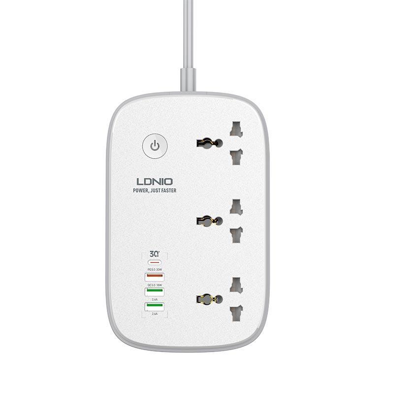 Мережевий фільтр LDNIO SCW3451 LDNIO SCW3451 - універсальний подовжувач, реалізований у сучасному практичному дизайні. Аксесуар спростить доступ до віддаленої розетки, надавши можливість підключити до неї 3 пристрої і одночасно заряджати 4 гаджети через 3 універсальні розетки, 3 USB порти і 1 роз'єм Type-C. Усі функціональні елементи подовжувача знаходяться на верхній панелі. Роз'єм Type-C підтримує швидке заряджання PD з максимальною потужністю на виході 30Вт, а маркований червоним кольором USB порт - технологію QC з максимальною потужністю 18Вт. Сила струму на виході двох портів USB може досягати 2.4А. Загальна потужність на виході всіх 4 роз'ємів - 30Вт. Є механічна кнопка включення. Вбудований Wi-Fi для бездротового керування живленням зі смартфона через Smart Life. Безпека всіх пристроїв і гаджетів, що підключаються, гарантується багаторівневим інтелектуальним захистом. - 3 розетки + 3 USB / 1 Type-C / PD / QC / WiFi 2 метри білий - Виробник: LDNIO Китай - Довжина кабелю: 2 метри - Кількість розеток: 3 - Кількість USB: 3 USB / 1Type-C - WiFi : да - USB заряджання: є - Вимикач: є - Колір: білий