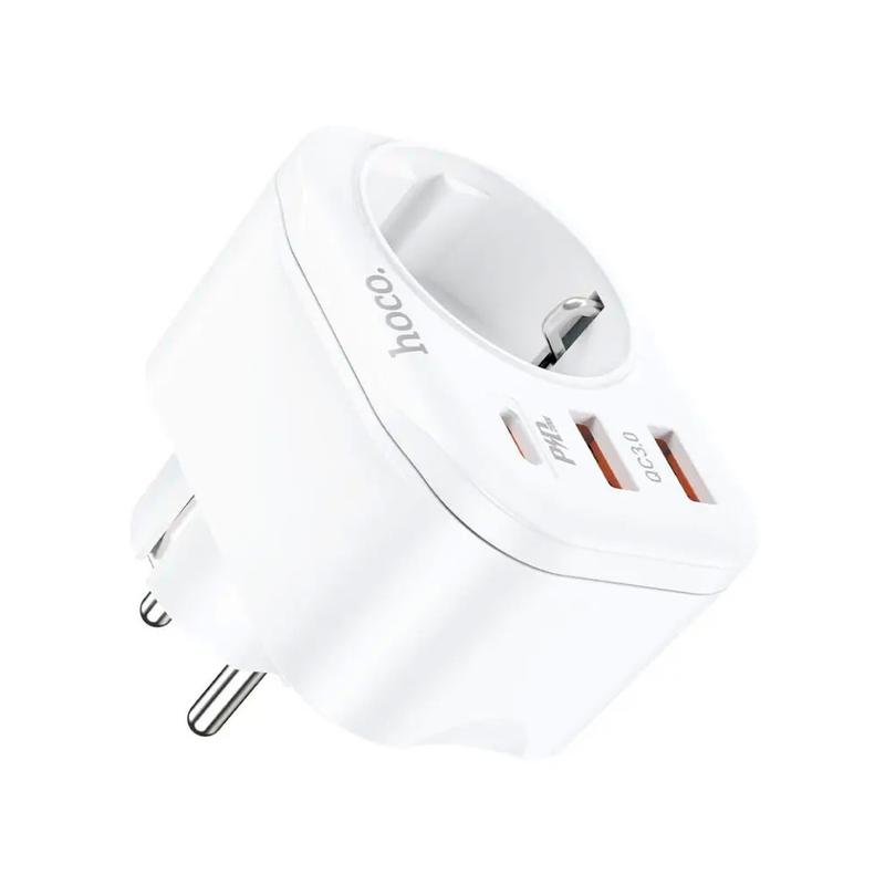 Сетевой фильтр hoco ns3 на 4 розетки и 3 usb для зарядки устройств 20w 220в белый ku-22