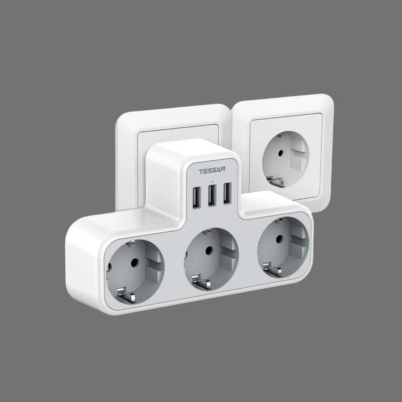 Удлинитель питания 6 в 1 tessan eu plug с 3 розетками переменного тока + 3 usb