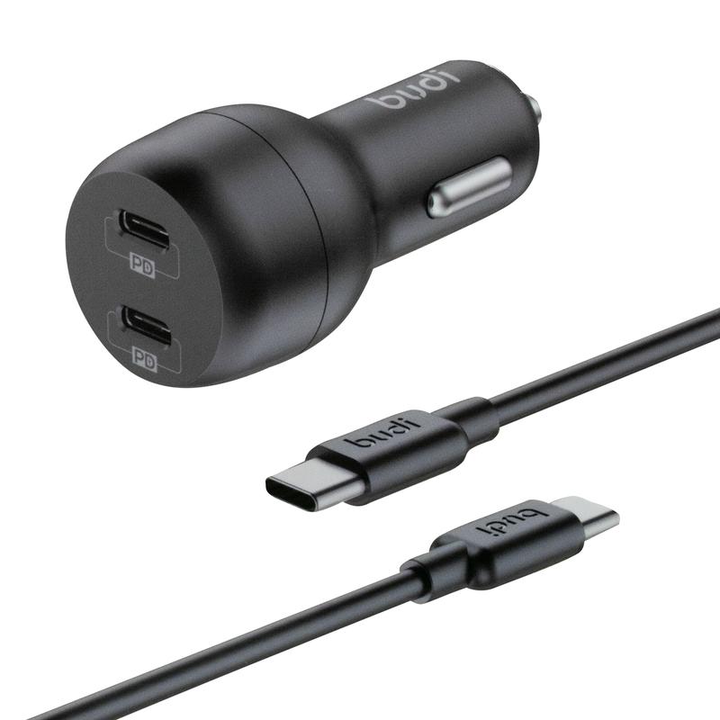 Cc108rttb - budi dual pd car charger 40w + cable pd usb-c to usb-c black