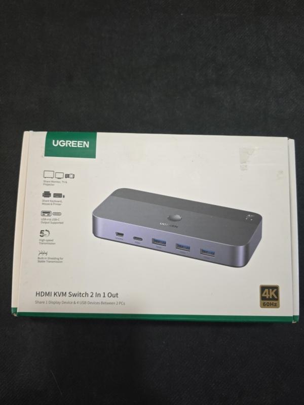 UGREEN USB 3.0 KVM Switch HDMI 4k 60hz 2k 120hz 1080P 240hz переключатель для 2-х компьютеров Особенности: KVM-переключатель 1 монитор 2 компьютера Этот KVM-переключатель позволяет 2 компьютерам совместно использовать 4 устройства USB 3.0, такие как клавиатура, мышь, жесткие диски, флэш диск и принтер, а также централизовать управление двумя компьютерами на одном мониторе. Вы можете легко переключаться между двумя компьютерами, что не только поддерживает порядок на рабочем месте, но также помогает максимизировать производительность и возможности просмотра. Порты USB 3.0 и USB-C KVM-переключатель UGREEN HDMI имеет 3 порта USB 3.0 и 1 порт USB-C для совместного использования USB-накопителей, принтеров, мобильных жестких дисков, U-дисков и других устройств USB 2.0 и USB 3.0. USB 3.0 обеспечивает скорость передачи данных до 5 Гбит/с, это позволяет быстрее передавать файлы и изображения, делая работу и жизнь проще и удобнее. Высокое разрешение UHD 4K при 60 Гц Этот 2-портовый KVM-переключатель поддерживает разрешение до 4K при 60 Гц и обратную совместимость: 4K при 30 Гц, 2560*1440 при 120 Гц, 1920*1080 при 240 Гц. KVM переключатели UGREEN также поддерживают HDMI 2.0, HDCP2.2/1.4, 3D, CEC и HDR, что делает воспроизведение изображения более изысканным и реалистичным, цвета более яркими и динамичными, что действительно доставляет удовольствие вашим глазам. Два способа переключения С помощью однокнопочного переключателя или контроллера рабочего стола можно свободно переключаться между двумя компьютерами, экономя место на столе и разделяя дисплей, клавиатуру и мышь между обоими компьютерами, повышая производительность в офисе или доме. Отличная совместимость и отсутствие драйверов Этот 2-портовый KVM-переключатель HDMI поддерживает системы Windows 11/10/8.1/8/7/Vista/XP, Mac OS и Linux. Просто подключи и работай, без драйверов. Этот USB KVM-переключатель также совместим с большинством устройств-источников HDMI, таких как PS5, PS4, PS3, Xbox One, ТВ-бокс, ПК, ноутбук, коммутатор Nintendo и т.д. Он широко применяется на предприятиях, в офисе и дома.