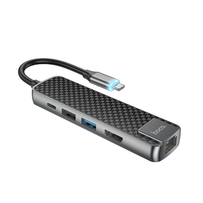 Hub адаптер hoco type-c easy view hb23 | |4khdmi, lan, 1usb 3.0, 1usb2.0, type-c pd, 60w/3...