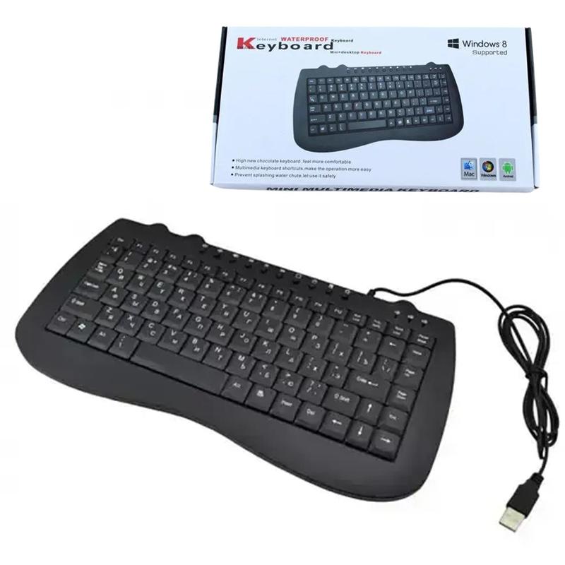 Клавиатура для ПК KEYBOARD MINI KP-988 - стильная проводная клавиатура, с удобными кнопками, размер позволит легко переносить ее в сумке. Преимущества: - Компактная мультимедийная клавиатура; - Имеет раскладку идентичную раскладке ноутбуков; - Без цифрового блока; - Компактная и удобная; - Легкая в установке; - Есть клавиши быстрого мультимедийного доступа; Описание: Клавиатура компьютера отличается эргономичной тонкой конструкцией и отсутствием отдельной панели с цифровыми кнопками, а привлекательная черная расцветка корпуса стильно украсит ваше рабочее место и гармонично сочетается с любым ЖК-монитором. Подсоединяется устройство к вашему ПК с помощью USB- разъема - просто подсоедините клавиатуру к системному блоку или ноутбуку и приступайте к работе. Клавиатура KEYBOARD MINI KP-988 USB имеет компактный дизайн, в котором гармонично сочетаются красота и практичность. Несмотря на небольшой размер, работать на ней очень комфортно за счет клавиш квадратного размера с закругленными углами. Клавиши очень приятные на ощупь. Характеристики: - Тип: мини клавиатура; - Раскладка: латиница (английский), кириллица (русский); - Количество клавиш: 88 шт.; - Тип нанесения символов: наклейки; - Количество дополнительных клавиш: 10 (Volume, +Volume, Mute, Previous, Play/Pause, Next, E-mail, Stop, Search, Home); - Интерфейс коммуникации с ПК: Usb; - Размер: 33 х 17 х 1,5 см (максимальные параметры); - Длинна кабеля: 130 см; - Цвет: черный; Комплектация: - Компьютерная клавиатура KEYBOARD MINI KP-988; - Упаковка;