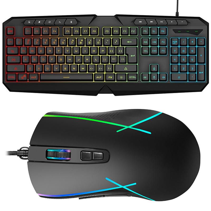 Набор клавиатуры мыши с RGB-подсветкой обеспечивает удобство и функциональность для увлекательных игровых сессий. Преимущества: - Яркая RGB-подсветка - Мультимедийные клавиши - Эргономичный дизайн мыши - Дополнительные боковые кнопки - Устойчивый корпус клавиатуры - Клавиши для игровых команд - Удобное колесо прокрутки - Высокая точность мыши - Совместимость с различными устройствами Описание: Клавиатура с мышкой предназначена для комфортного игрового процесса и создания яркого визуального эффекта. Клавиатура и мышка оснащена многоцветной подсветкой, равномерно распределяемой по всем клавишам. Мультимедийные клавиши на верхней панели позволяют быстро контролировать аудио и мультимедиа, не отвлекаясь от игры. Мышь имеет плавные линии с цветной подсветкой, что делает ее стильным дополнением к клавиатуре. Ее эргономичная форма удобна для продолжительных игровых сессий, а дополнительные боковые кнопки расширяют возможности для настроек. Колесо прокрутки также подсвечивается, обеспечивая удобство в использовании и точный контроль в играх, требующих быстрой реакции. Характеристики: - Тип товара: клавиатура мышка / комплект клавиатура и мышка / мышка и клавиатура - Тип набора: ведущий - Цвет корпуса: черный - Тип питания: от USB - Мыши DPI: 1200, 1400, 2400 - Количество кнопок на мышке: 7 - Количество кнопок на клавиатуре: 114 - Особенности: кнопки управления медиаплеером - Подсветка: RGB - Конструкция: игровая - Тип клавиатуры: мембранная Комплектация: - Комплект мышки и клавиатуры - Упаковка