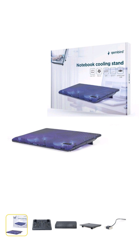 Виробник: Gembird Тип аксесуара: Підставки для ноутбуків Охолоджувальна підставка під ноутбук 15 дюймів Gembird NBS2F1505 2x120mm Охолоджувальна підставка під ноутбук 15 дюймів Gembird NBS2F1505 2x120mm. Особливості Компактна настільна підставка для ноутбуків до 15.6" з двома вентиляторами Ергономічний дизайн із підстроюванням нахилу для зручного кута огляду Охолодження ноутбука двома вентиляторами для запобігання перегріванню USB-роз'єм забезпечить додатковий порт для вашого ноутбука Світлодіодна підсвітка вентиляторів Характеристики Матеріал: метал і пластик Вентилятори охолодження: 2 шт., 1500 об./хв (± 10%), повітряний потік 20 CFM (± 10%) кожен, шум 10 дБа Діаметр вентилятора: 125 х 125 х 15 мм Регулювання висоти: 1 крок (0-5 градусів) Довжина USB-кабелю: 0.5 м USB-роз'єм: наскрізного типу (вхід/вихід) Розміри: 340 х 250 х 23 мм (у складеному вигляді) Споживана потужність: 5В, до 0.4 А Вага нетто: 0.45 кг Системні вимоги: вільний USB-порт для роботи вентиляторів