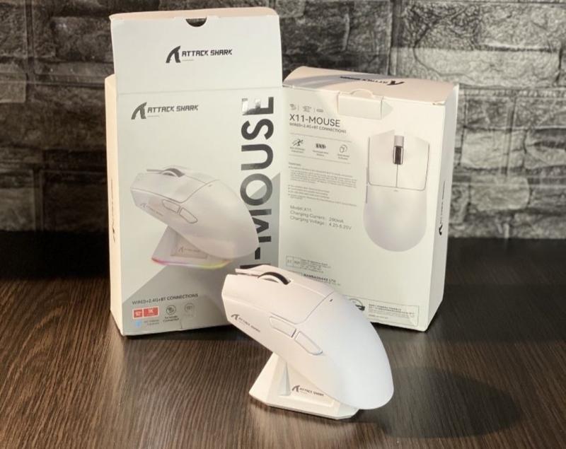 Беспроводная игровая мышь ATTACK SHARK X11 (белый цвет) с магнитной док-станцией. Оснащена флагманским сенсором PixArt 3311 с максимальным разрешением 22 000 DPI и 6 уровнями настроек. Три варианта подключения: проводной USB-C, 2.4GHz и Bluetooth. Переключение режимов осуществляется кнопкой на задней панели. Легкая конструкция – всего 63 грамма. Аккумулятор работает до 65 часов на одном заряде, а полная зарядка занимает около 2-3 часов. Основные характеристики: • Тип подключения: проводное / 2.4G / Bluetooth 5.2 • DPI: 400–22000, регулируется • Вес: 63 г • Частота обновления: 125–1000 Гц • Сенсор: PixArt PAW3311 • Переключатели: HUANO (20 млн нажатий) • Размеры: 128 x 64 x 40 мм • Автономность: до 80 часов • Совместимость: Windows XP, Win7, Win8, Win10, Mac, Android [игровая мышь, беспроводная мышь, легкая мышь, мышь с RGB, геймерская мышь, игровая мышь, беспроводная мышь, Attack Shark X11, мышь с док-станцией, ультралегкая мышь, мышь для игр]