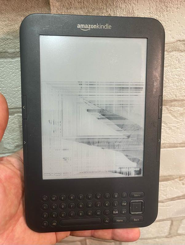Виробник: Kindle Електронна книга, читалка, рідер Amazon Kindle 3 D00901 під ремонт. Стан видно на фото - на дисплеї є механічне пошкодження. Горить індикатор під час зарядки.