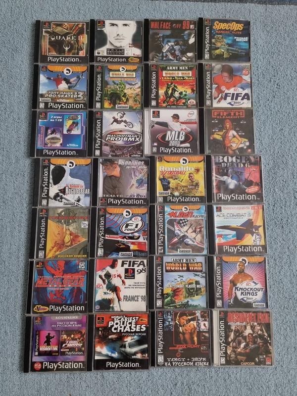 53 диски. 4 із них подвійні СD. Ціна 4000 грн за все. Ігри для Playstation із домашньої колекції. Стан дуже хороший. Mike Tyson boxing Small soldiers Lemmings Louvre The Final Curse 2CD Sim Theme Park Worms Armageddon GTA 2 Grand Theft Auto Fifa 2001 4×4 World Trophy Vampire Hunter D Resident Eveil 3 Nemesis Ford Racing Time Crisis Project Titan Necronomicon 2CD The Lot World Jurassic Park NBA Live 2001 Fifa 2000 Dracula 2CD Fifa 2002 SpecOps 3 The Fifth Element SpecOps Ranger ELITE Tony Hawks Pro Skater 3 Gran Turismo NHL Face Off 2001 Tom an Jerry in House Trap Army Men Sarge's Heroes GTA 2 Resident Evil 3 Nemesis Tom Clancys Ghost Recon Soul Reaven Surf Riders Army Men World War NHL Face Off 99 Army Men World War Land Sea Air FIFA 2001 David Beckham Soccer World War Final Front MLB 2000 Tony Hawks Skateboarding Mat Hoffmans Pro BMX Bogey Dead 6 Ronaldo Tom Claneys Rainbow Six Rogue Spear SpecOps Stealth Patrol Ace Combat 3 Krossfire F1 2000 Resident Evil Fox Hunt 2CD Knockout Kings 2001 Army Men World War Real Combat. Plastic Men Gun Survivor Resident Evil / Time Crisis World's Scariest Police Chases Братки Від 100 грн ігри на ПК 7in1 Resident Evil 4/Silent Hill 4/Silent Hill 3/ Prince of Persia/ Blood Rayne 2/ Daemon Vector/ Clive Barkers Undying