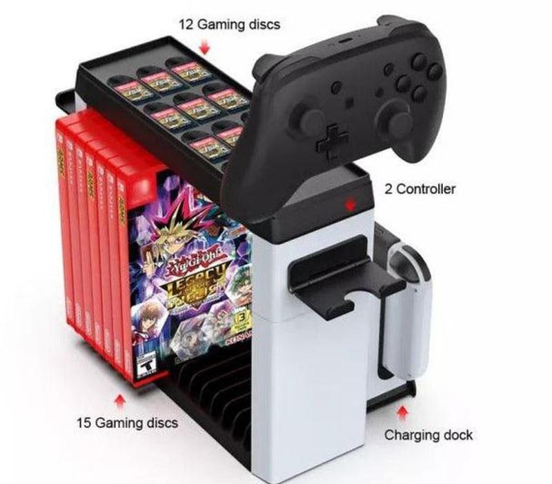 Органайзер Wiilkac Switch с зарядным устройством для контроллера, док-станция для хранения телевизора, совместима с Nintendo Switch/OLED Joy-con, Pro Controller и аксессуарами Poke Ball Plus