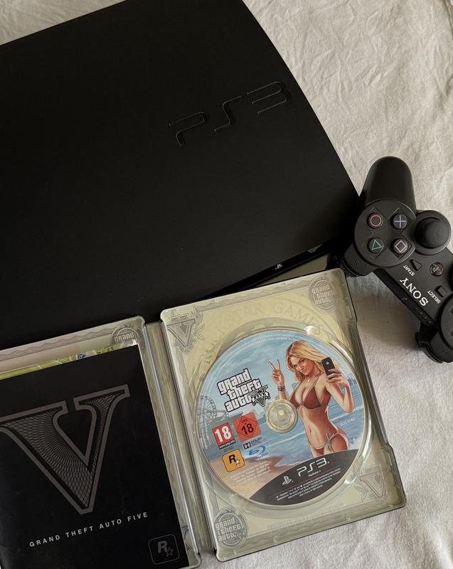 Продам свою приставку PlayStation 3 з диском GTA V та джойстиком. Стоїть без діла, можливо, комусь знадобиться. Стан видно на фото. Ціна адекватна, забирайте.