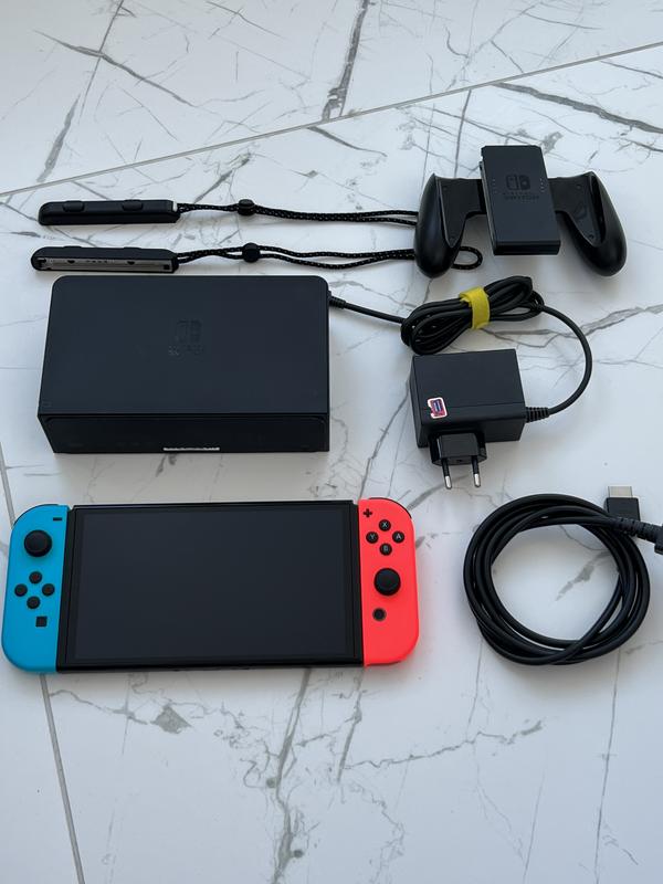 Nintendo Switch OLED. Був у неактивному користуванні 1,5 роки. Все що на фото входить у комплект: -базовий набір приставки -кейс-сумка зберігання -кейс для приставки -карта пам’яті 256 ГБ -додатковий джойстик з накладками -PRO controller -провід до ТВ без бази -додатковий тримач для джойконів - 4 картриджі з іграми - Witcher III, Mortal Combat 11, Snow runner, Diablo 3. Комплект не розпаровується