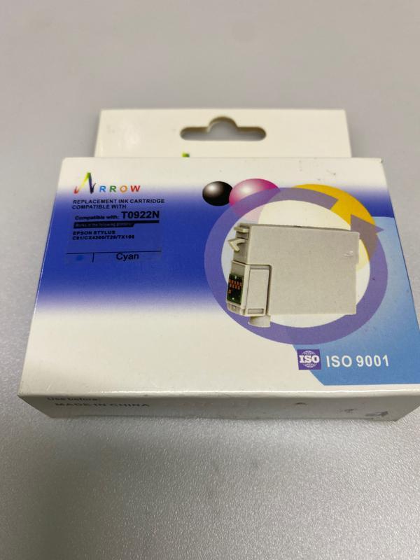 Виробник: Epson Тип комплектуючих: Картриджі Призначення: Для принтерів Продаю катридж Arrow T0922N Cyan, для Epson Stylus C91/Cx4300/T26/TX106, новий