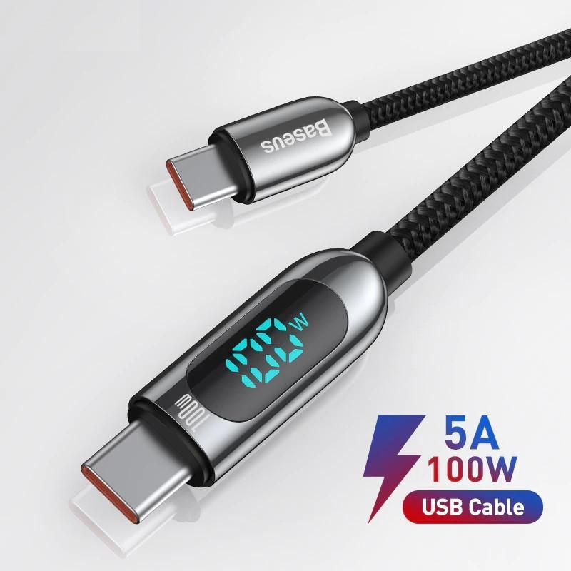 Кабель baseus led display fast charging type-c to type-c 100w ...