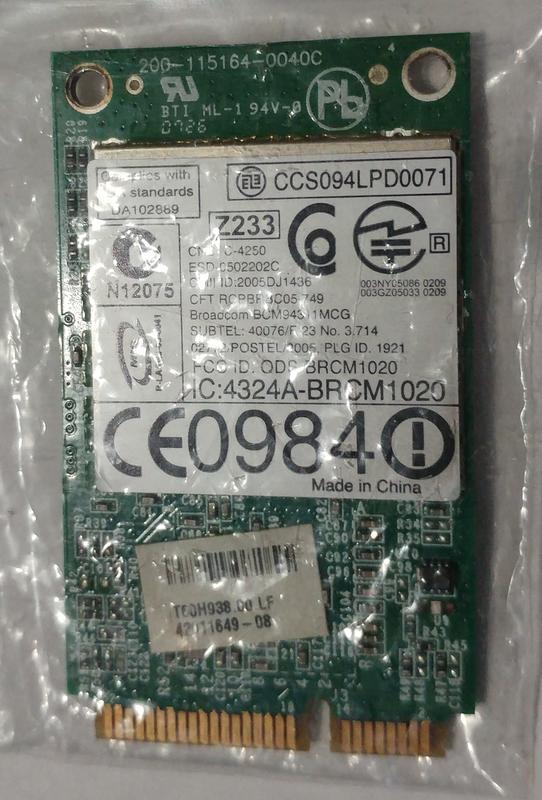 Виробник: Acer Тип комплектуючих: Адаптери Призначення: Для ноутбуків Кілька примірників у наявності Адаптер Mini PCI-E WiFi Broadcom BCM94311MCG 802.11 B/G 54 Mbit