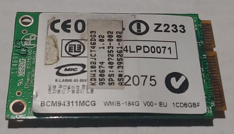 Виробник: Інший виробник Тип комплектуючих: Адаптери Призначення: Для ноутбуків Кілька примірників у наявності Wi-Fi модуль Broadcom BCM94311MCG miniPCI-E