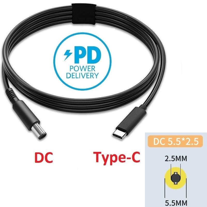 Разъем цилиндрической формы, внешний диаметр - 5,5мм, внутренний диаметр - 2,5 мм. Наиболее широко распространенный тип разъема. Встречается на большинстве моделей Asus, Panasonic, Fujitsu/Siemens, IBM и Lenovo, некоторых моделях Acer, Toshiba и множестве моделей других производителей. Кабель с PD триггером для ноутбука 65W DC 18.5V-20V. Кабель работает только с блоками питания и повербанками с разъемом Type-C, поддерживающими быструю зарядку по протоколу Power Delivery (PD). Максимальная мощность 65W, подходит для устройств питающихся от 18,5 до 20V. Длина 1,5 метра.