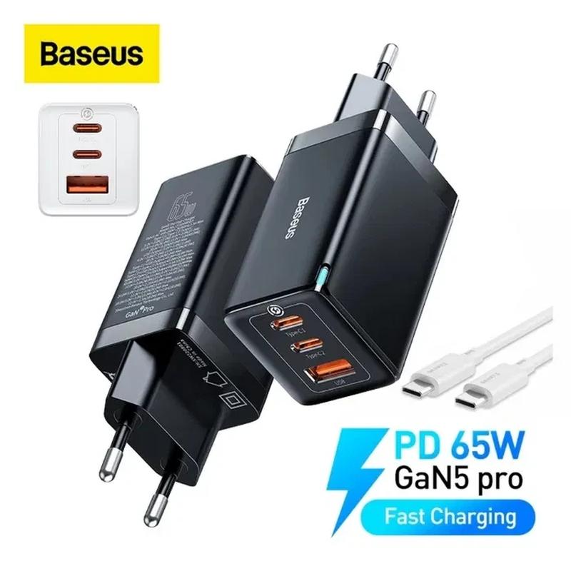 Зарядное 65w baseus gan5 pro кабель type c зарядка блок сетевое устройство смартфон ноутбу...