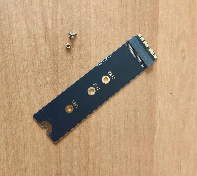 Частина коштів від продажу товару, перераховуються на підтримку Збройних Сил України. Відправлення замовлень здійснюється тільки Новою Почтою або "Розеткою" за умовою повного оформлення через "Безпечну оплату" і оплатив річ або за умови 100% попередньої оплати на картку Приватбанку. Відправка накладенним платежем НЕ здійснюеться !! Высококачественный адаптер переходник позволяет установить вместо "родного" SSD диска Аррlе, диск форм фактора M.2 NGFF NVMe (key-M) в MacBook Retina, MacBoook Air, iMac 2013-2017 (разъем SSD - 12+18 контактов). Установка SSD и адаптера не вызывает никаких проблем! Скорость чтения/записи переходником НЕ ограничивается. Объем подключаемого SSD диска НЕ ограничивается. Все работает "без танцев с бубном" - не надо ничего заклеивать и изолировать. В комплекте ТОЛЬКО адаптер и винт для крепежа SSD, диск SSD в комплект не входит. Характеристики: Поддерживаемые диски M.2 NGFF NVMe или AHCI Поддерживаются диски типоразмера 2230, 2242, 2260 и 2280 Поддержка протокола PCI-e 2.0, 3.0 Совместимость: МасBook Retina 13'', Late 2013 2014 2015 МасBook Retina 15',' Late 2013 2014 2015 МасBook Air 11'' 2013 2014 2015 МасBook Air 13'' 2013 2014 2015 2016 2017 iМас 21,5" - 27" 2013 2014 2015 2016 2017 2018 2019 (4K, 5K).