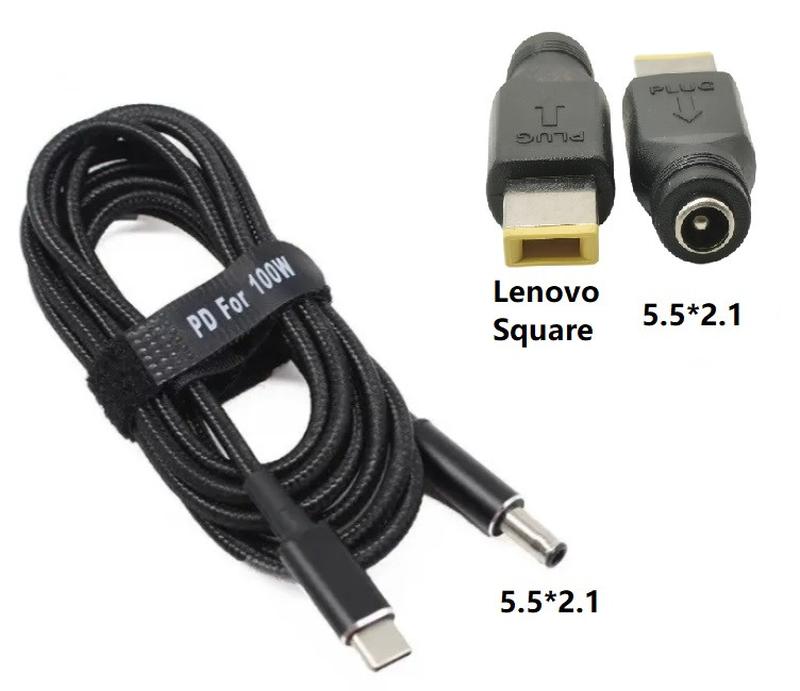 USB Type-C 100W кабель живлення и переходник DC 11.0×4.5 Square Lenovo для зарядки ноутбука от повербанка USB Нужна консультация? Мы с радостью ответим на все интересующие Вас вопросы. Поможем с подбором нужного кабеля. Поддержка быстрой зарядки PD 18,5~20 В Может передавать ток 5 А, Power Delivery, поддерживающий PD источник питания, ноутбук, протокол быстрой зарядки адаптера, мобильный источник питания для зарядки. PD выходное напряжение устройства должно поддерживать 45 Вт/65 Вт/100 Вт. Внимание: Пожалуйста, проверьте, поддерживает ли Ваш PowerBank 20V. Ноутбук заряжается от 20 вольт, PowerBank должен поддерживать выходное напряжение 20 вольт. Характеристики: - Входящий интерфейс: штекер Type-c с триггером (с индукционной функцией, двойной чип E-mark) - Материал: Щелочная медь + плетеная нейлоновая проволока - Интерфейс: Square Lenovo 11.0×4.5 мм. - Ширина штекера: 11,0 мм. - Высота штекера: 4,5 мм. - Ток: до 5A. - Напряжение: 18,5V-20V. - Мощность: до 100 Вт. - Длина кабеля: 180 см. - Сила тока: зарядное устройство PD с поддержкой 45 Вт/65 Вт/90 Вт/100 Вт Комплектация: - Кабель USB Type-C к DC 5.5×2.1 мм. 180см. - Переходник DC 11.0×4.5 мм. Square Lenovo