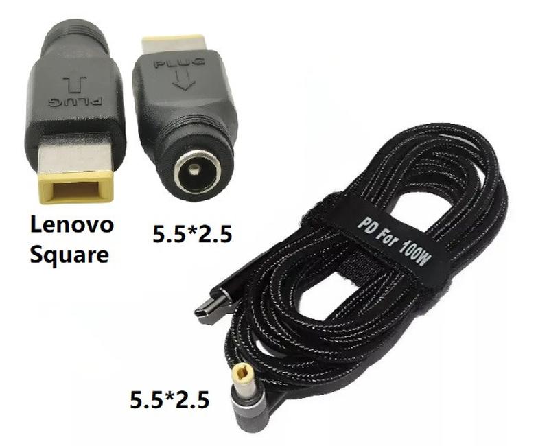 USB Type-C 100W кабель живлення и переходник DC 11.0×4.5 Square Lenovo для зарядки ноутбука от повербанка USB Нужна консультация? Мы с радостью ответим на все интересующие Вас вопросы. Поможем с подбором нужного кабеля. Поддержка быстрой зарядки PD 18,5~20 В Может передавать ток 5 А, Power Delivery, поддерживающий PD источник питания, ноутбук, протокол быстрой зарядки адаптера, мобильный источник питания для зарядки. PD выходное напряжение устройства должно поддерживать 45 Вт/65 Вт/100 Вт. Внимание: Пожалуйста, проверьте, поддерживает ли Ваш PowerBank 20V. Ноутбук заряжается от 20 вольт, PowerBank должен поддерживать выходное напряжение 20 вольт. Характеристики: - Входящий интерфейс: штекер Type-c с триггером (с индукционной функцией, двойной чип E-mark) - Материал: Щелочная медь + плетеная нейлоновая проволока - Интерфейс: Square Lenovo 11.0×4.5 мм. - Ширина штекера: 11,0 мм. - Высота штекера: 4,5 мм. - Ток: до 5A. - Напряжение: 18,5V-20V. - Мощность: до 100 Вт. - Длина кабеля: 180 см. - Сила тока: зарядное устройство PD с поддержкой 45 Вт/65 Вт/90 Вт/100 Вт Комплектация: - Кабель USB Type-C к DC 5.5×2.5 мм. 180см. - Переходник DC 11.0×4.5 мм. Square Lenovo