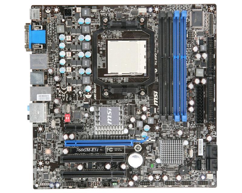 Плата под amd sam3 msi 760gm-e51 ( ms-7596 ) на ddr3! понимает все 2-6 ядерные процы до x6...