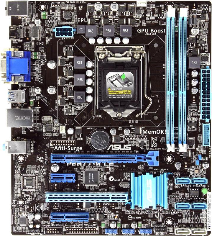 Надежная плата lga1155 asus p8h77-m le c hdmi, usb3.0 поддерживает sata3 + core- i7,i5,i3...