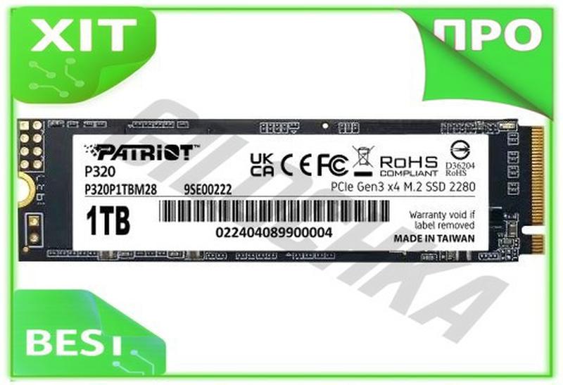 Ve твердотельный накопитель ssd 1tb new version patriot pci-e 3.0 x4 m.2 2280 для компьюте...