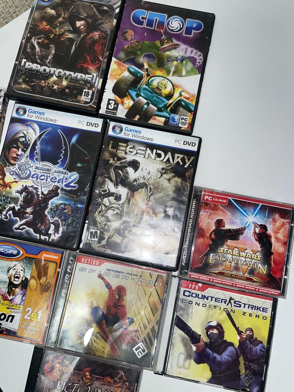 Компьютерные игры - Человек паук 2 - Футбол 2006 (2 в 1) - Counter Strike - Star Wars - История военных эпох - Спор - Legendary - Sacred 2 - Корсары 3, ветер свободы - Prototype Состояние отличное,цена за 1 игру