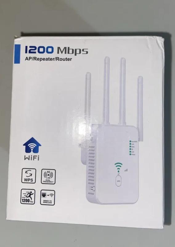 универсальный Wi-Fi усилитель сигнала (репитер/повторитель), который может работать в режимах точки доступа (AP), репитера (Repeater) или роутера (Router), с заявленной максимальной скоростью до 1200 Мбит/с. Описание: Устройство предназначено для расширения зоны покрытия существующей Wi-Fi сети. Оно принимает слабый сигнал от основного роутера и усиливает его, создавая более стабильное и широкое покрытие в местах, где ранее был плохой или отсутствовал сигнал (например, дальние комнаты, второй этаж). Основные функции и возможности (судя по надписям на коробке): * Три режима работы: AP (Точка доступа), Repeater (Повторитель), Router (Маршрутизатор). * Скорость: До 1200 Мбит/с (вероятно, суммарная скорость в двух диапазонах: 300 Мбит/с в 2.4 ГГц + 867 Мбит/с в 5 ГГц). * Стандарт Wi-Fi: Поддержка современного стандарта Wi-Fi (скорее всего, Wi-Fi 5 / 802.11ac, так как заявлена скорость 1200 Мбит/с). * WPS (Wi-Fi Protected Setup): Быстрая настройка и подключение к роутеру нажатием одной кнопки. * Порт LAN: Для проводного подключения устройств (например, компьютера или игровой консоли) или для подключения к основному роутеру. Теги (ключевые слова для поиска): Wi-Fi репитер, Усилитель Wi-Fi сигнала, Повторитель Wi-Fi, Wi-Fi Extender 1200 Мбит/с, Точка доступа, Wi-Fi роутер, Двухдиапазонный репитер, AC1200. * Устройство от малоизвестного/небрендового производителя, где цифра 1200 Мбит/с может быть теоретическим максимумом. отзывы * Положительные: Простая настройка (часто через кнопку WPS), эффективное расширение зоны покрытия, стабильная работа при правильном размещении, отличное решение для "мертвых зон" в доме. * Нейтральные/Смешанные: Требуется долгое время для поиска оптимального места размещения, скорость по Wi-Fi может снижаться (особенно в режиме репитера), яркие светодиоды (могут мешать ночью). * Отрицательные: Периодически "зависает" и требует перезагрузки, сложная настройка без WPS, нестабильное соединение после выключения из розетки. Важно: Для достижения заявленной скорости 1200 Мбит/с и стабильной работы критически важно, чтобы основной роутер тоже поддерживал стандарт Wi-Fi 5 (802.11ac) и работу в двух диапазонах (2.4 и 5 ГГц)