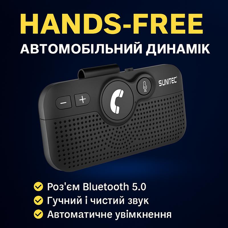 Динамик беспроводной Sunitec, Bluetooth аудио ресивер с микрофоном, аккумуляторный, для автомобиля, BC980P SUNITEC BC980P -- это современное устройство для громкой связи, позволяющее отвечать на звонки и слушать музыку в авто без отвлеканий от дороги. Идеальное решение для водителей, которые заботятся о своей безопасности и хотят оставаться на связи. 🔧 Технические характеристики: - Bluetooth: 5.0 (QCC/CSR чипсет) - Аккумулятор: 650 мАч - Время разговора: до 20 годин - Время ожидания: понад 1000 годин - Время зарядки: ~2-3 години - Мощность динамика: 3 Вт - Режим сну: автоматическое отключение при потере связи - Подключение: до 2 телефонов одновременно - Громкость/трек-контроль: кнопками на корпусе - Микрофон: встроенный с шумоподавлением DSP - Крепление: кліпса для козирка в комплекті - Питание: через USB Type-C (кабель + автоадаптер в комплекте) * * * Что делает SUNITEC BC980P идеальным выбором: - Автоматическое включение/выключение: устройство включается сам, когда вы садитесь в авто, и переходит в спящий режим, если Bluetooth сигнал исчезает. - Шумоподавление: четкий звук даже на скорости или в пробках благодаря технологии DSP и качественному микрофону. - Поддержка голосовых ассистентов: совместимость с Siri и Google Assistant для полностью "hands-free" опыта. - Два телефона - один динамик: легко переключайтесь между частными и рабочими вызовами. - Полный контроль под пальцами: принимайте звонки, регулируйте громкость или переключайте треки прямо с панели устройства. - Компактность и надежное крепление: быстро монтируется на козырек благодаря металлическому зажиму - никаких проводов или сложного монтажа. - Экономия заряда: устройство разумно сохраняет энергию и сигнализирует о необходимости в зарядке. * * * Как подключить: 1. Включите Bluetooth на смартфоне. 2. Включите устройство переключателем сверху. 3. Удерживайте центральную кнопку 3-5 секунд - начнет мыть. 4. На телефоне выберите «BC980P» -- готово! * * * Кому подойдет: - Водиум такси, Uber, Bolt - Дальнобойщикам, логистам - Автовладельцам без штатной Bluetooth-системы - Тем, кто ищет подарок автолюбителю Название характеристики Значение Тип Система громкой связи / Автомобильный спикерфон Модель SUNITEC BC980P Производитель SUNITEC Страна производитель Китай Совместимость Все телефоны с Bluetooth (iOS / Android) Bluetooth Версия 5.0 (QCC/CSR) Дальность соединения До 10 метров Подключение двух устройств Да (Multipoint) Тип питания Встроенный аккумулятор + зарядка от USB Емкость аккумулятора 650 мАч Время работы в режиме разговора До 20 годин Время работы в режиме ожидания До 1000 годин Время полной зарядки 2-3 години Мощность динамика 3 Вт Тип микрофона Встроенный с шумоподавлением DSP Автоматическое включение/выключение Так, на основе вибрационного датчика Функции Прием/отклонение вызова, регулировка громкости, перемотка треков Управление музыкой Так, с кнопок на корпусе Голосовое управление Поддержка Siri / Google Assistant Тип установки Крепление на солнцезащитный козырек Материал корпуса Пластик, металлический зажим Размеры (Д × Ш × В) 116 × 67 × 17 мм Вес 70 г Тип зарядного интерфейса USB Type-C Комплектация Спикерфон, кабель Type-C, автоадаптер, клипса, инструкция Стан Новый