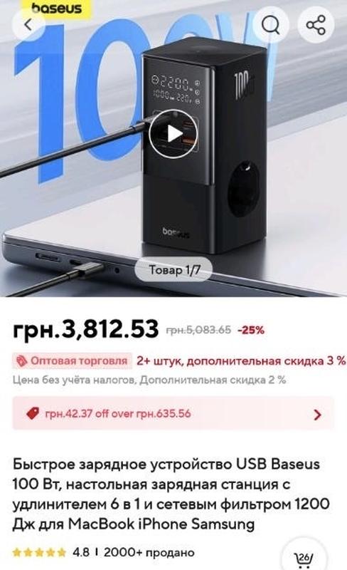 Быстрое зарядное устройство USB Baseus 100 Вт, настольная зарядная станция с удлинителем 6 в 1 и сетевым фильтром 1200