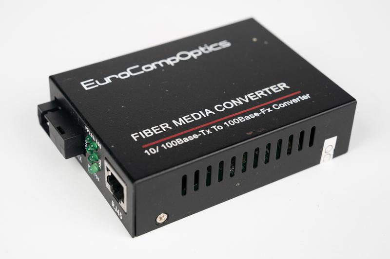 Оптоволоконный Медиаконвертер FoxGate EuroCompOptics 10/100Base-TX to 100Base-FX 1310нм, SM, RJ45 SC/PC, 20 км (EC-B-0,1-1SM-1310nm-20) Модель ECO-MC-100S-A Принцип работы: Мини медиаконвертер FoxGate ECm-R-0,1-1SM-1310nm-20 используется для преобразования сигнала по стандарту 10BASE-T/100BASE-TX Fast Ethernet по витой паре в сигнал стандарта 100BASE-FX Fast Ethernet по однодлинному оптоволокну. Устройство поддерживает технологию WDM, которая позволяет передавать и получать сигналы на длине волны 1310 нм по одному оптическому волокну на расстояние до 20 км. На лицевой панели медиаконвертера есть светодиодные индикаторы, которые информируют о наличии питания, а также скорости передачи и статусе сетевого и оптического интерфейсов. На задней панели находится разъем подключения питания. Модель комплектуются внешним блоком питания: 100-240 В, 50 Гц. Кроме того, она оснащена 1 портом RJ-45 для витой пары и 1 портом для оптического кабеля (SC-коннектор). Технические особенности Настольное исполнение; 6 световых индикаторов на передней панели; 1 порт RJ-45 для витой пары; Автоопределение для Ethernet 10/100 Мбіт, Full/Half Duplex; Поддержка стандартов IEEE 802.3 10Base-T, IEEE 802.3u 100Base-TX/FX, IEE 802.3ab, IEEE 802.3E; Поддержка технологии WDM: прием-передача сигналов на длинах волн 1310 нм, 1550 нм; SC разъем для подключения оптического кабеля; Дальность связи с оптического волокна до 20 км; Внешний блок питания 100-240В, 50Гц.
