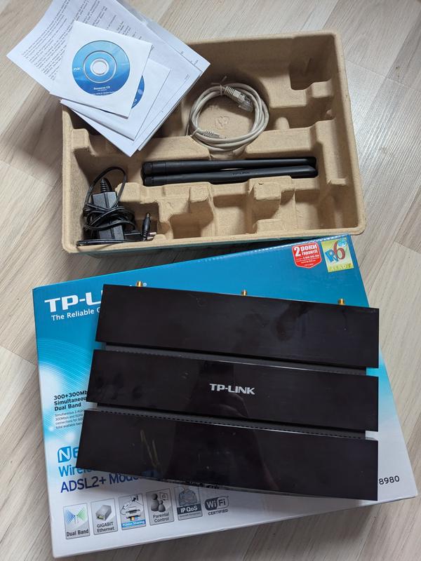 ADSL2+ модем роутер TP-Link TD-W8980 с поддержкой Wi-Fi. Основные возможности: • Dual Band Wi-Fi (2.4 ГГц + 5 ГГц) • Скорость до 300+300 Мбит/с • Встроенный ADSL2+ модем • 4 Ethernet порти • Поддержка IP QoS Комплектация: • Роутер TP-Link TD-W8980 • Блок питания • Ethernet кабель • Инструкция и диск с ПО • Оригинальная упаковка Состояние: работает отлично, есть незначительные царапины на корпусе. Полная комплектация с документами. Готов к подключению и настройке.