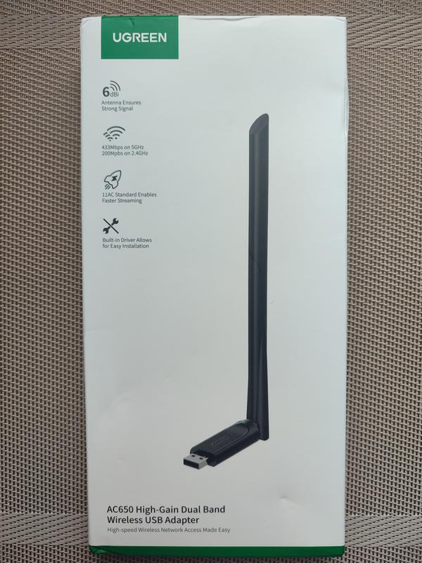 Ugreen AC650 WiFi Adapter Ugreen AC650 WiFi Adapter – мощный двухполосный беспроводной USB-адаптер, разработанный для улучшения подключения вашего компьютера к Интернету. Оснащенный высокопроизводительной антенной с коэффициентом усиления 6 дБи, этот адаптер обеспечивает быстрое, стабильное и безопасное соединение на частотах 2.4 ГГц и 5 ГГц, что делает его идеальным решением для настольных компьютеров, ноутбуков и других устройств. Основные характеристики Поддержка двух диапазонов: Адаптер AC650 поддерживает частоты 2.4 ГГц и 5 ГГц, обеспечивая гибкость и оптимальную производительность. Диапазон 2.4 ГГц предлагает стабильные сигналы, большие расстояния передачи и медленное затухание сигнала, в то время как диапазон 5 ГГц обеспечивает большую пропускную способность, меньше помех, низкую задержку и более плавную скорость интернета. Высокопроизводительная антенна 6 дБи: Внешняя антенна 6 дБи обеспечивает более сильное проникновение сигнала и более широкое покрытие относительно со стандартными антеннами. Такая конструкция с высоким коэффициентом усиления позволяет устанавливать стабильные соединения даже на больших расстояниях и через несколько стен и этажей, улучшая общую производительность. Регулируемая антенна: Антенну можно регулировать для оптимизации мощности и стабильности сигнала в различных условиях. Благодаря вертикальному вращению на 180° и боковому вращению на 90° вы можете точно настроить положение антенны для достижения лучшей возможной производительности. Быстрая передача данных: Адаптер AC650 обеспечивает впечатляющие скорости передачи данных, до 433 Мбит/с в диапазоне 5 ГГц и 200 Мбит/с в диапазоне 2.4 ГГц. Эти высокие скорости гарантируют плавный просмотр веб-страниц, быструю загрузку, потоковую передачу видео без задержек и бесперебойный опыт онлайн-игр. Несколько режимов работы: Адаптер предлагает два режима работы: режим приема и режим передачи. В режиме приема адаптер подключает ваш компьютер к существующей сети WiFi, в то время как в режиме передачи он создает точку доступа WiFi для совместного использования вашего интернет-соединения с другими устройствами. Надежные функции безопасности: Ugreen предоставляет приоритет сетевой безопасности, поддерживая несколько протоколов шифрования, включая WPA-PSK, WPA2-PSK и WEP (64/128-бит). Эти расширенные режимы шифрования защищают ваши данные и обеспечивают безопасное беспроводное соединение. Широкая совместимость: Адаптер AC650 совместим с широким спектром операционных систем, включая Windows 7, 8, 8.1, 10, 11 и Linux (2.6.18-5.3). Он предлагает функциональность plug-and-play для систем Windows, исключая необходимость установки дополнительных драйверов. Мощный чип Realtek: Оснащен надежным чипом Realtek RTL8811CU, этот адаптер обеспечивает быструю и стабильную работу, сохраняя отличную совместимость и низкое энергопотребление. Светодиодный индикатор: Встроенный светодиодный индикатор обеспечивает четкий визуальный сигнал о рабочем состоянии адаптера, что позволяет легко контролировать его функциональность одним взглядом. Надежный и сертифицированный: WiFi адаптер Ugreen AC650 прошел тщательное тестирование и получил сертификаты CE, FCC, UKCA, SRRC, IC и TELEC, что подтверждает его надежность и соответствие отраслевым стандартам. Технические характеристики Бренд: UGREEN Модель: CM496 Код товара: 90339 Чип: RTL8811CU Тип USB: USB 2.0 WiFi-антенна: Высокопроизводитель