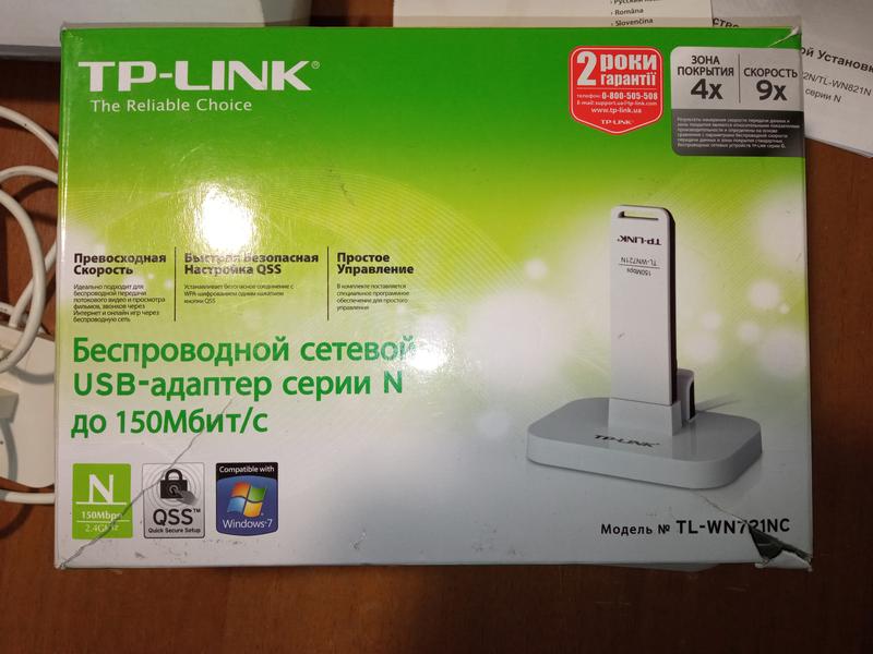 Сетевой беспроводной USB-адаптер TL-WN721N до 150 Мбит/с (TP-Link) Полный комплект, все на фото.
