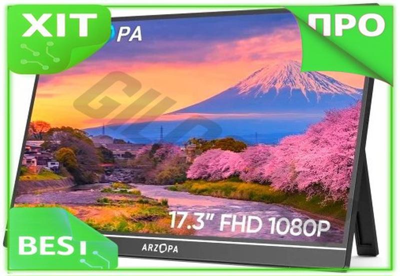 Ve монитор 17.3 дюйма arzopa new version портативный ips fhd 1920x1080 для ноутбука игрово...