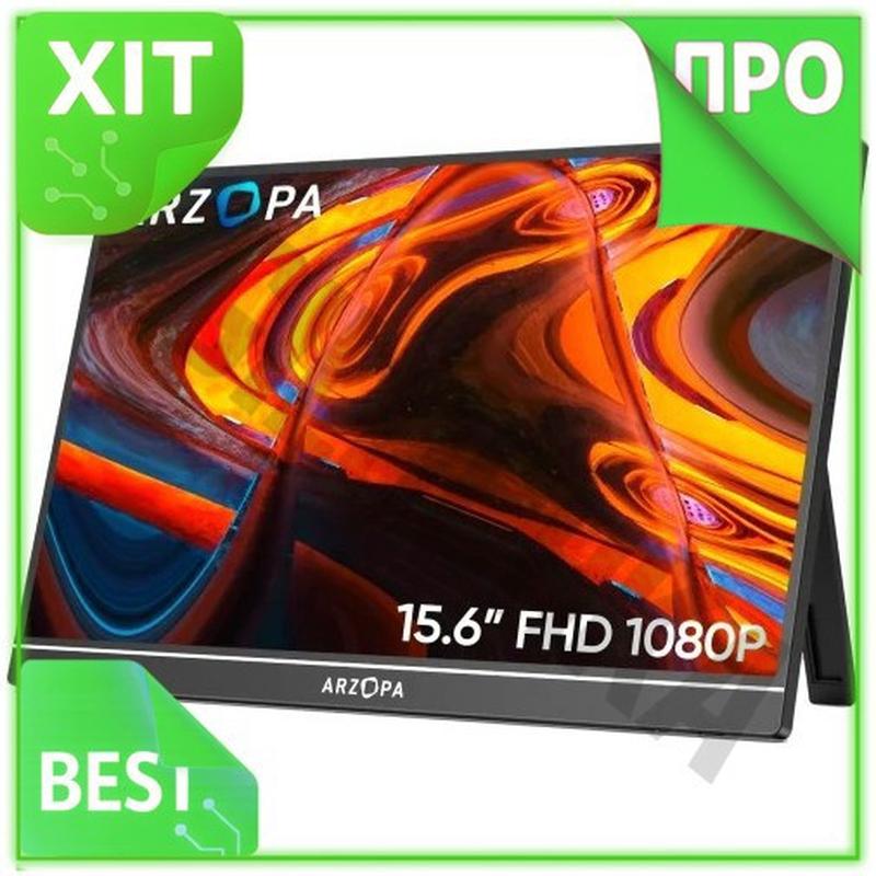Ve монітор 15.6" arzopa сенсорний new version ips 1920x1080 чорний портативний екран для р...