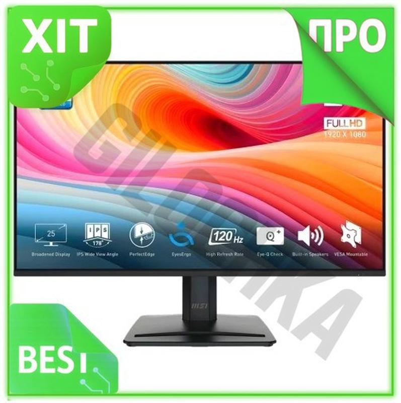 Ve монитор 24.5" msi черный new version ips 1920x1080 120 гц для офиса игр с адаптивной си...